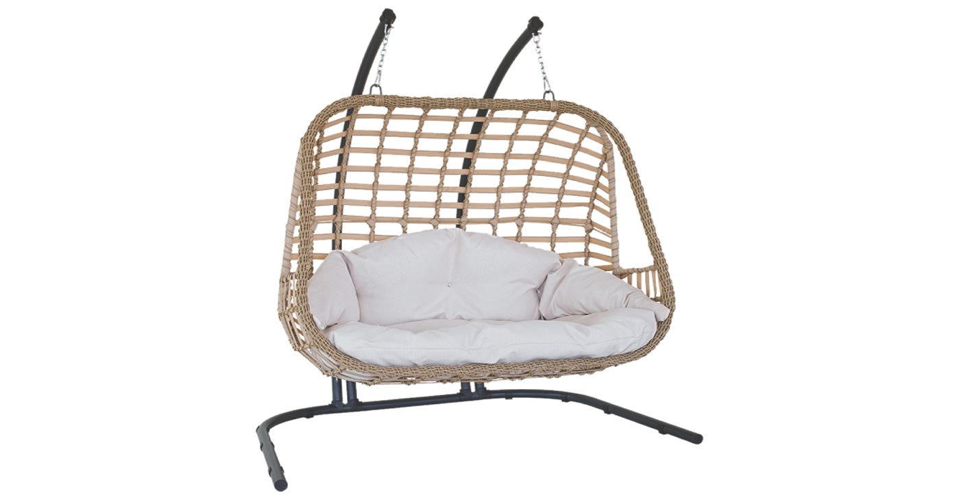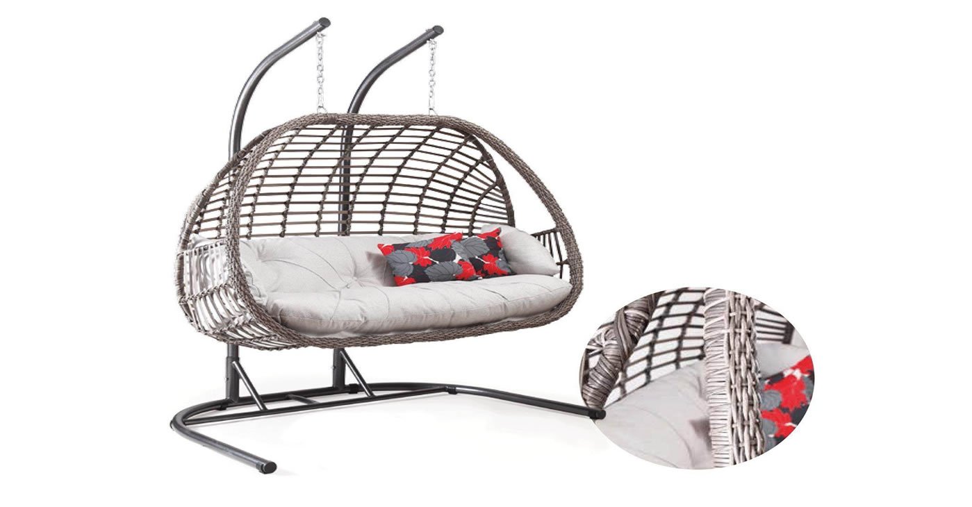 Ürünümüz: Metal malzemeden üretilmiştir . Ayak rengi siyahtır. Çift kişiliktir. Nemli bezle silinebilir Tüm hava koşullarında kullanılabilir Suya ve Uv dayanıklı makrome ip ile yapılmıştır. Görsellerde görülen makrome iplerde ve minderde renk ton farklılığı olabilir. Minderler fiyat'a dahildir. 180 kg taşıma kapasitesine sahiptir. İsteğe göre rattan örme ile de +2.000 Tl fark ile alınabilir.