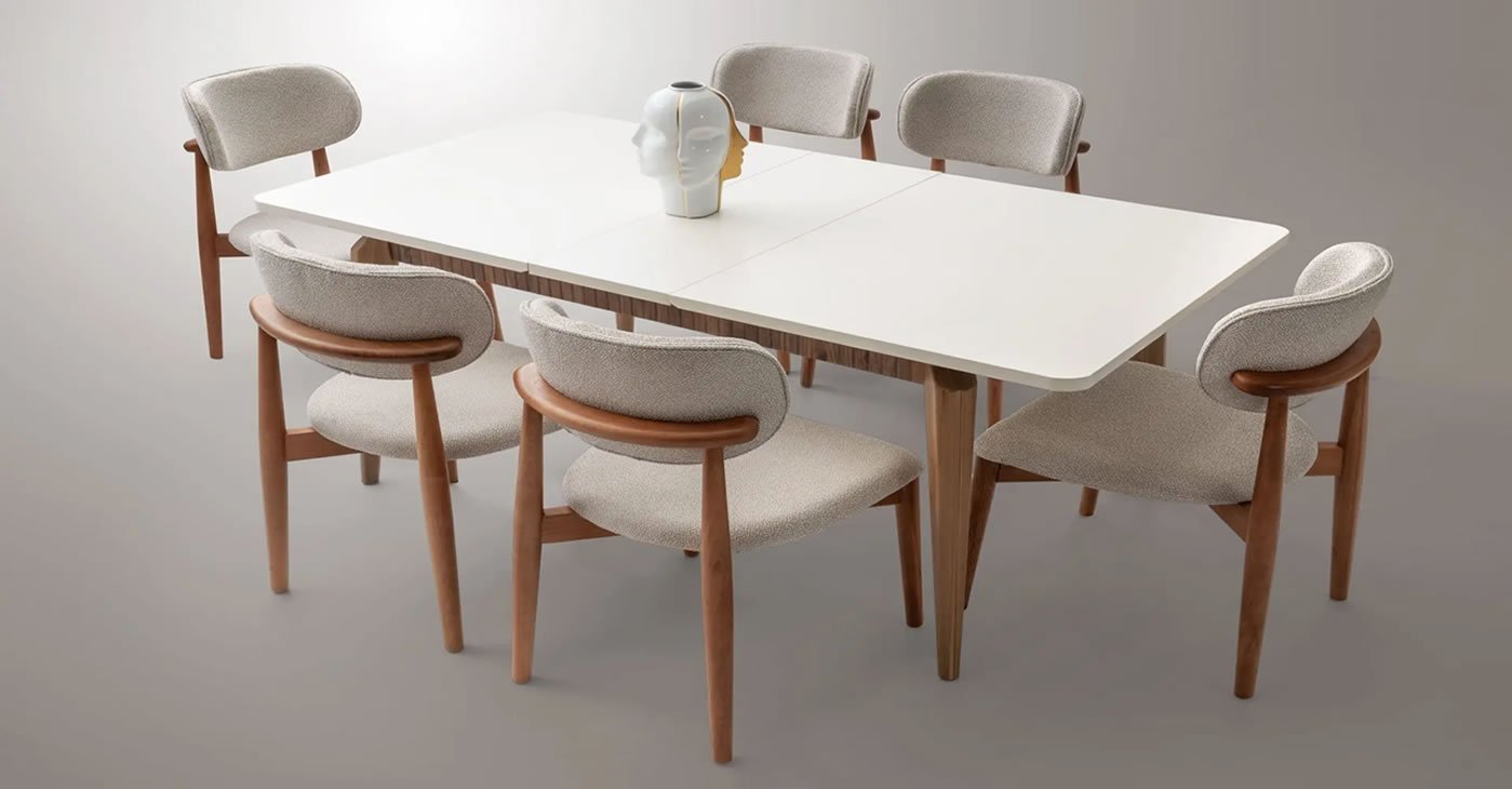 Ürünümüz: Aynasız Konsol, Konsol Aynası, Masa ve 6 Sandalye den takım oluşmaktadır. Ürünlerimizde 1'inci sınıf işçilikle üretilmekte olup Ahşap ve MDF dir. Açılır kapanır olma özelliğine sahiptir. | AÇIK HALİ 180*90 KAPALI HALİ İSE 150*90CM DİR