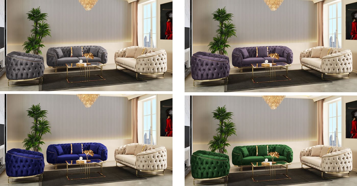 Ürün içeriği: 3 + 2 + 1 takımdan oluşmaktadır. | Ürün iskeleti: Gürgen, Kavak, Kontraplak dır. Kumaş Bilgisi: Yönsüz Kadife, Babyface, Keten, Nubuk vb. İsteğe bağlı kumaştan yapılabilir, fiyat farkı ödemesi yapılaraktan. Tüm renk seçenekleri mevcuttur. Sünger: 32 Dansity Soft sünger kullanılmıştır. | Sırttan yatırmalı yatak olma özelliğine sahiptir. Ayaklar: Metal